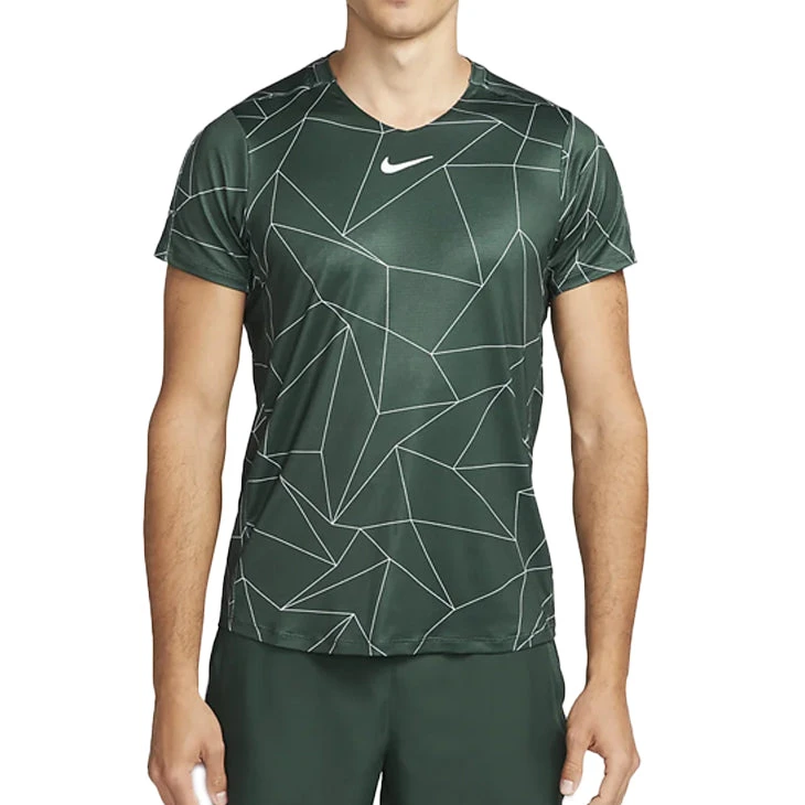 Stretchy, breathable and made from at least 75% recycled polyester fibres, the NikeCourt Dri-FIT Advantage Top will soon be your go-to choice for fast, fierce matches. The abstract print is inspired by the geometric lines of the court.